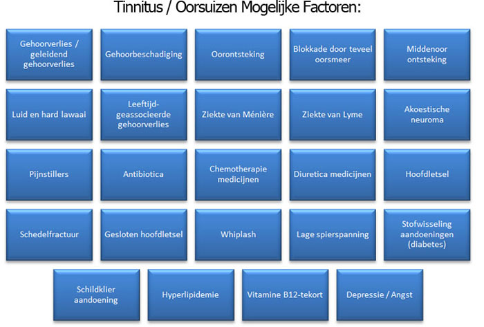 Deze geluiden kunnen continu aanwezig zijn maar ook met tussenpozen. De ene keer kunnen de geluiden hard klinken en een andere keer zachter en bij sommigen is het geluid monotoon. Vaak gaat oorsuizen samen met een overgevoeligheid voor bepaalde geluiden. Lang werd aangenomen dat de oorzaak van oorsuizen in het oor zat maar onderzoek geeft aan dat het oorsuizen ook vanuit de hersenen kan ontstaan. oorsuizen kan in 1 oor zitten of in allebei of het wordt gehoord in het midden van het hoofd.