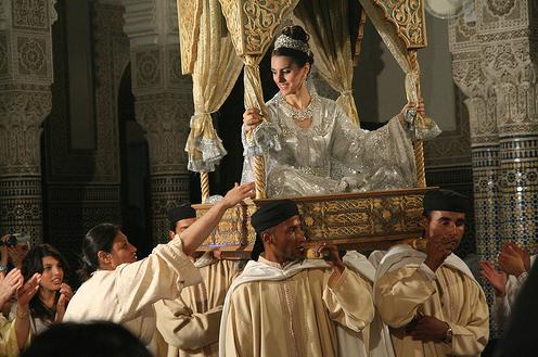 Afgelopen zomer tijdens mijn vakantie in Marokko was ik op weg naar een terrasje om samen met mijn gezin iets te gaan drinken, ondertussen verzamelde zich op het plein een menigte. De reden daarvan was een traditionele bruiloftsstoet die midden op het plein halt hield. De bruid, die leek te komen uit een sprookje van 1001 nacht, zat op een mooi groot wit paard. De bruid was op weg naar haar bruidegom en werd begeleid door vrienden, familie, muzikanten, zangers en dansers die toen de stoet stil hield een optreden gaven. Ondertussen verzamelden steeds meer toeschouwers zich op het plein en begonnen mee te zingen en dansen. Toen de stoet de weg vervolgde lag gelijk het verkeer stil.