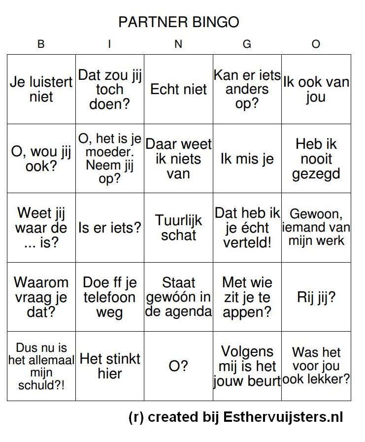 Het einde van het jaar komt in zicht. Het is vroeg donker en wij zitten knus binnen bij de kachel. De hoogste tijd voor een potje … Partnerbingo! Met dank aan Esther Vuijsters.nl.