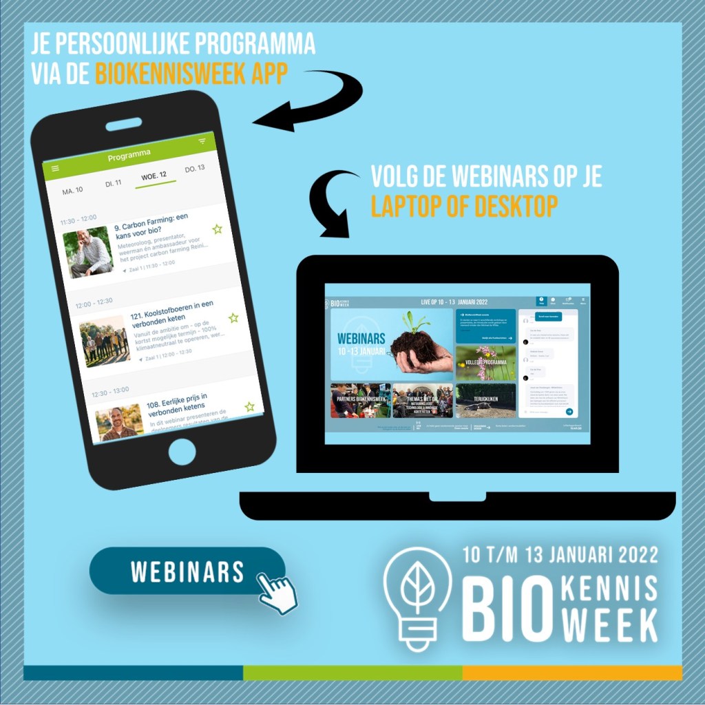 Van 10 t/m 13 januari werd voor de achtste keer de biologische vakbeurs De Biobeurs georganiseerd. Voor de tweede keer op rij vond het event vanwege Corona geheel online plaats, en kreeg het de titel Biokennisweek. De Biokennisweek bleek weer een uitstekend platform om inspiratie op te doen, en kennis te delen en te verbreden. Tijdens dit event was er weer een uitgebreid programma,115 webinars en netwerksessies werden er georganiseerd.